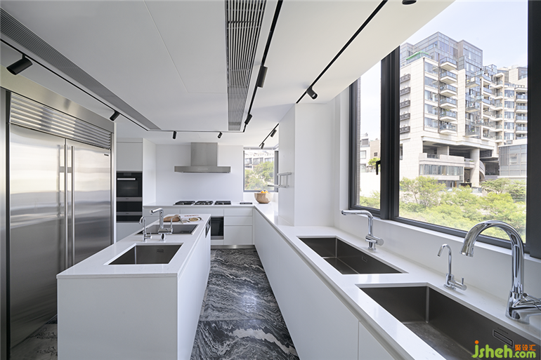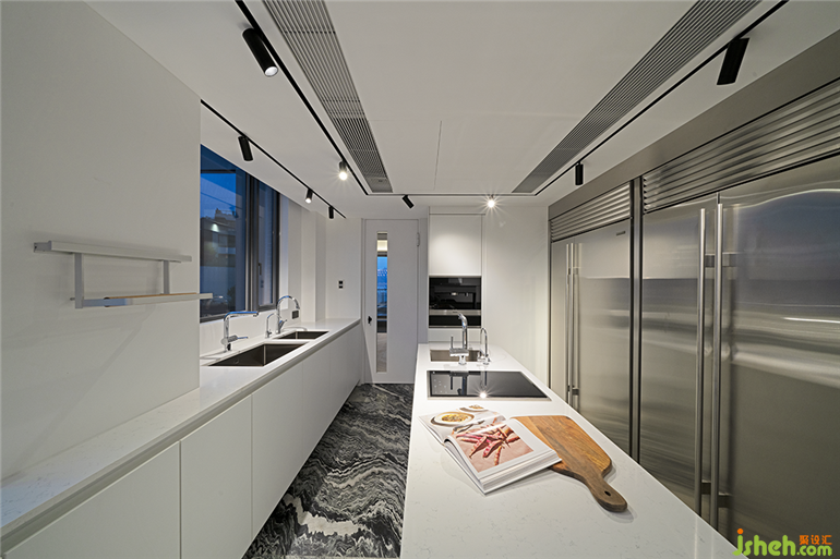 夜幕降临,室内的照明开启精确设定的夜间模式,柔和的光线,烘托出材质的温润质感,香港私宅设计使人的意识与精神慢慢放松趋于平静,遵从内心想法,漫游于自我的精神领地。