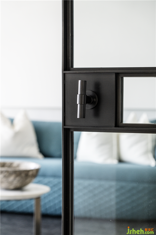 小型的私人客厅,简约自然的手法贯穿始终,克制注入些许个人喜爱的低饱和度偏冷色调的蓝色系列家具,空间情绪彰显和谐舒适。