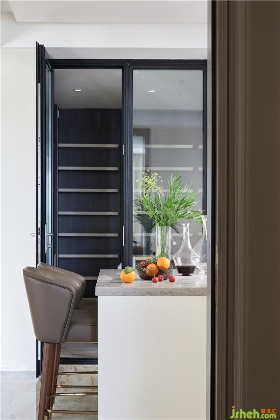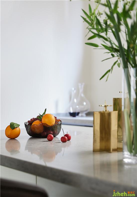 日光通过百叶窗映照在西厨岛台上,顺应季节时令,品尝最鲜甜的果味,亦或倚靠吧台,来一曲舒缓慵懒的蓝调,和爱人小酌片刻,都是精致的存在。