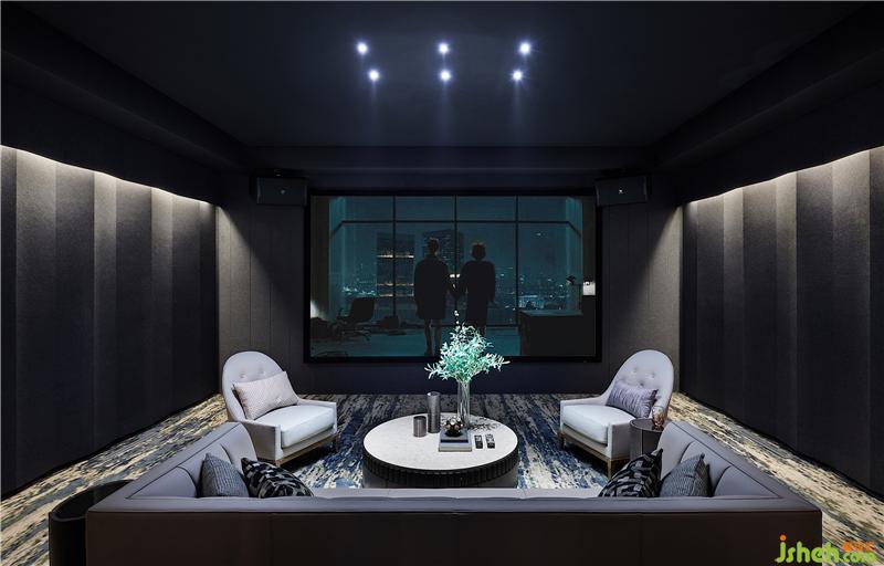 负一层的影音室营构了一个家人互动的休闲场景,智能化影音设备在有限的空间里提供了无尽的想象,通过丰富多彩的感官体验令情绪得到放松。