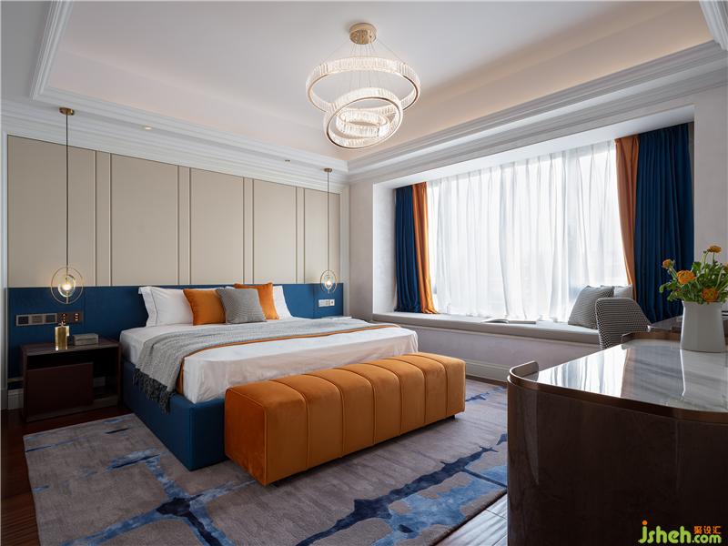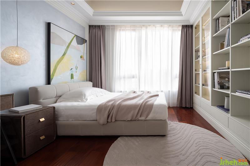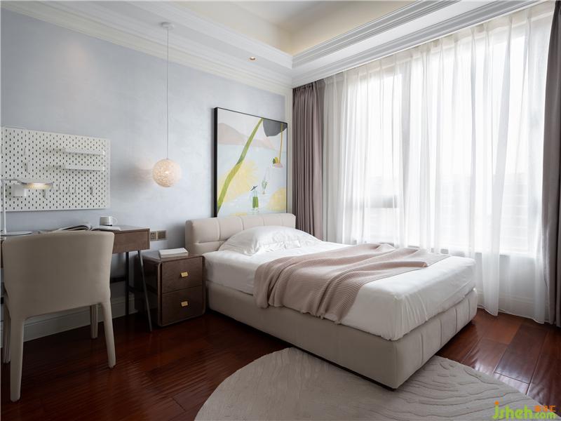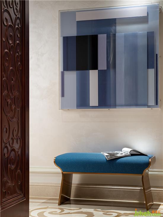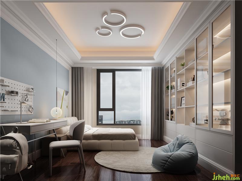 清新可爱的装饰画,粉蓝的柔和配比,肌理柔和的圆毯,设计师通过每一个小细节梳理出女孩的烂漫可人。当晨光摄入室内,她仿若花朵新生般开启个性的一天。豪宅装修设计