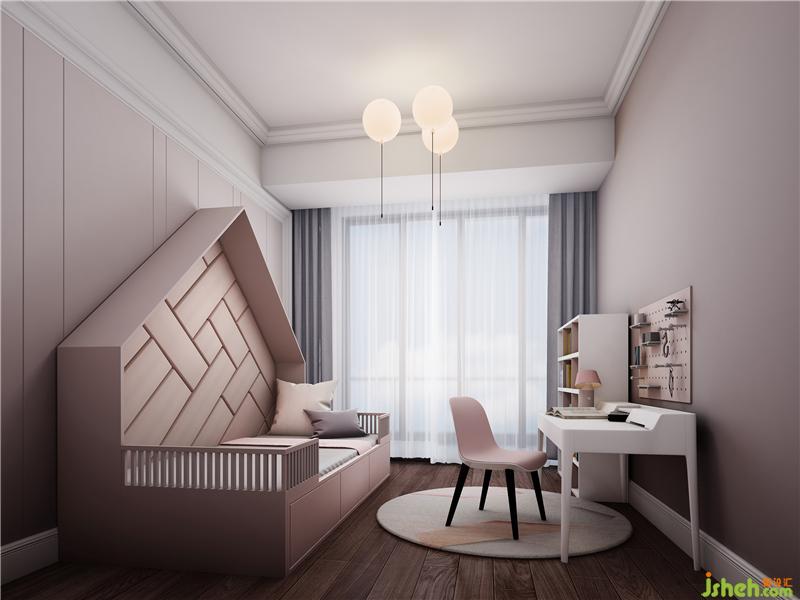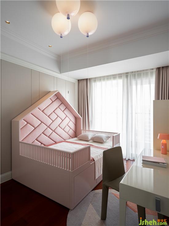 小女儿房承袭最柔和梦幻的樱语粉,活泼童趣的气球灯,编织屋顶的公主床,实用且兼具表现力。成长性设计考虑到孩子的成长,在未来的时间里,便捷可移动替换的床具留给居者更多的创造可能。