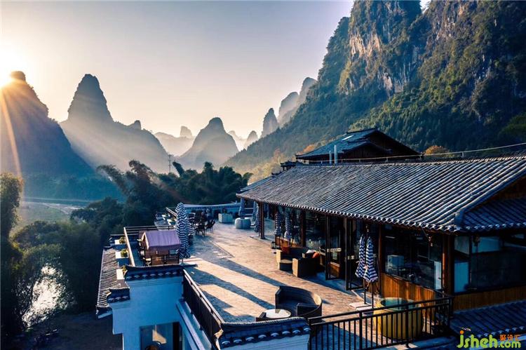 阳朔山水谣酒店位于桂林漓江河畔阳朔县兴坪段镰刀湾,面临漓江,背倚元宝山,地处漓江风景最精华之处。在酒店露台上,您可以独享发呆时光,还能将“漓江精华游”上推介的兴坪段佳景尽收眼底:左眺“黄布倒影”“和尚斗嘴”,右览“美女梳妆”、“鲤鱼上滩”;清晨观“老寨山日出”,傍晚赏“渔舟唱晚”,夜半遥望“星空璀璨”。