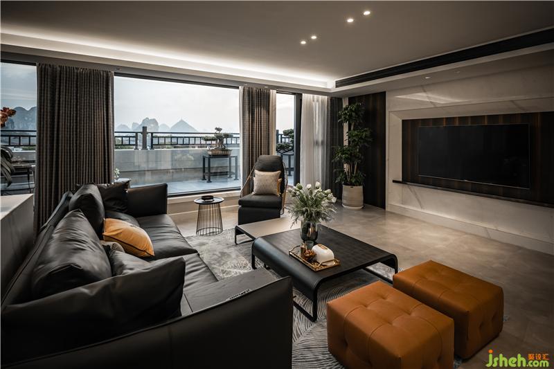 客厅改造后的落地窗,将窗外远处连绵不断的山景犹如绿黛,圈进室内,实现了室内与室外完美的过渡,将自然与建筑完美的结合在一起。当午后,光线照进来时,客厅里洋溢着暖暖的阳光,非常惬意!