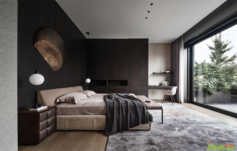 主卧空间流淌着静谧和光明、沉稳与力量,如同细水流长般的浪漫隽永。成都别墅设计低饱和色调以营造澄澈温柔的梦幻之境,细腻精致的材质搭配呈现丰富的视觉感受,静谧的空气里流动着细腻的温情。