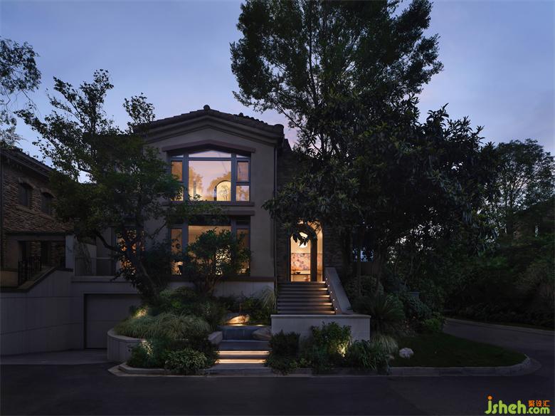 成都别墅设计阳光树影和自然白色的层次恣意满溢。
