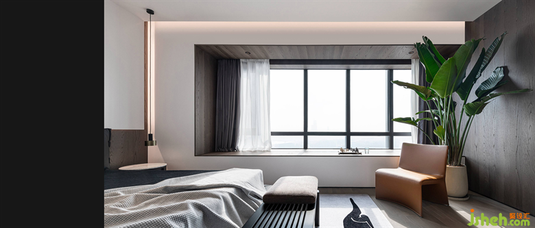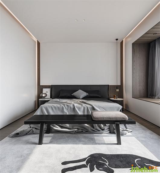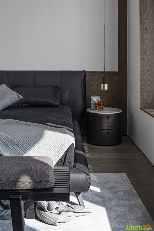 耕图设计主卧室干净简练的明朗线条营造着沉着克制的空间基调,搭以细腻柔和的软装配饰,韵与法,柔与刚,含蓄与迸溢,兼收并蓄。回归生活本质,静享生活恬静淡然之美。