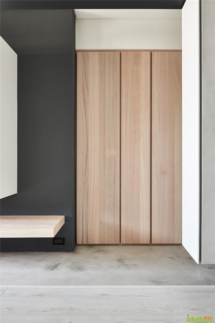 ▲客厅电视墙为硅藻土材质,前方电视柜,后方室鞋柜,拥有双面柜功能。