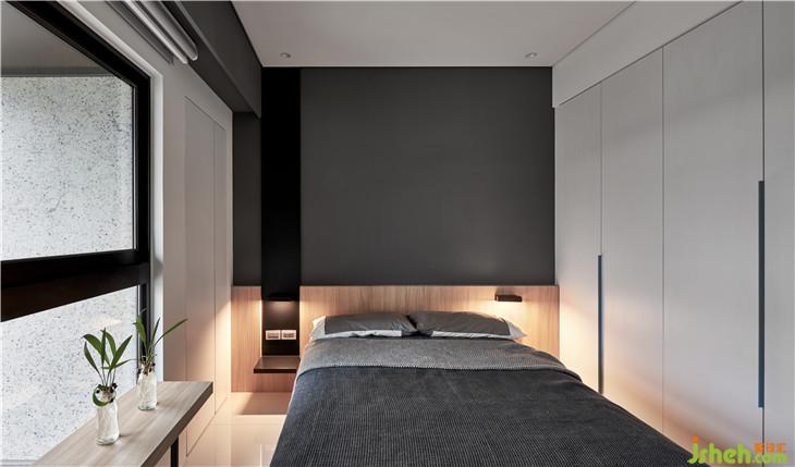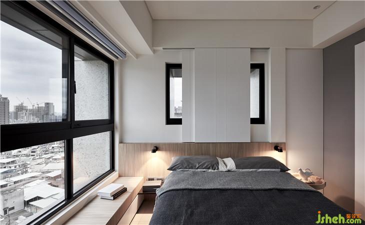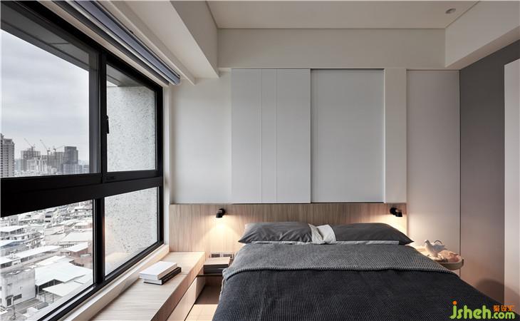 床头上方因为格局关系有窗户,所以用拉门隐藏
