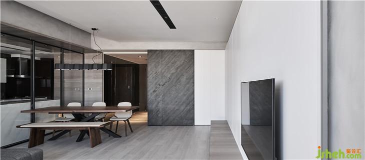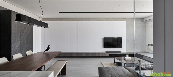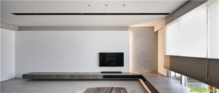 电视墙利用藏管线的旗面与原有墙面脱开打光,后方底墙也使用硅藻土涂料。