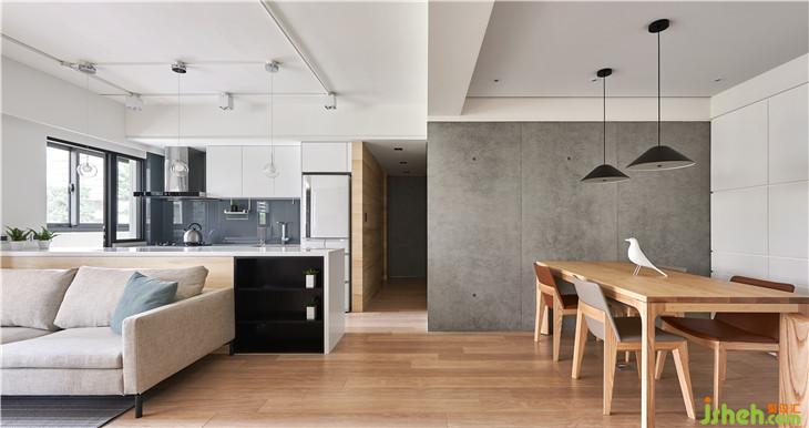 因空间限制,餐桌区我们就设定在角落,刚好也可以整合电器收纳柜