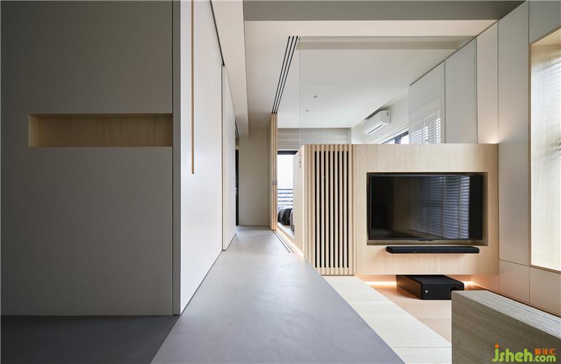 1. 在入口一侧将衣柜的机能结合更衣室,也营造出玄关的界面