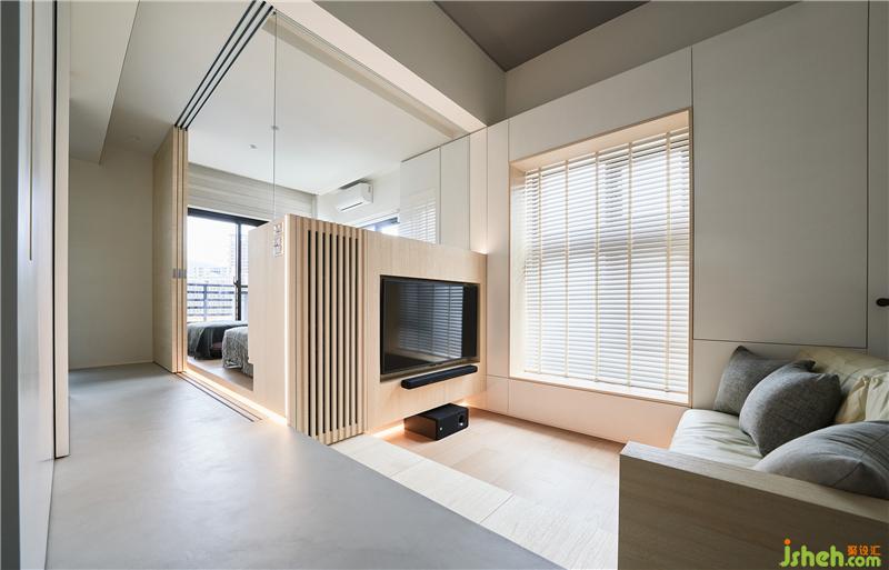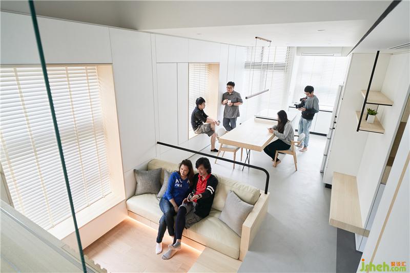 2.刻意保留原有下凹空间,利用高低差的卧榻变成客厅界面