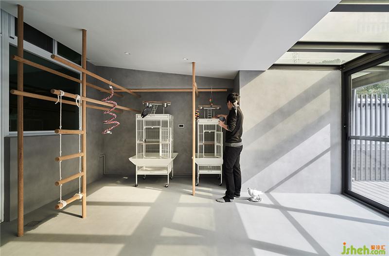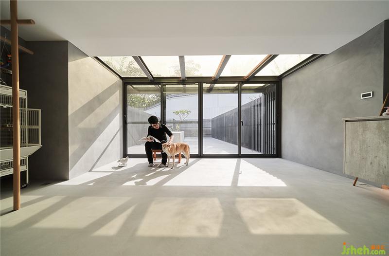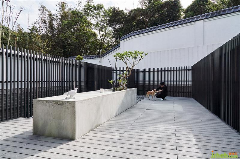 户外区原来建商只是贴贴磁砖,我们就建议屋主可以整理一下,地板铺个塑木地板,围牆用隔栅修饰,并刻意在中间做了一个隆起的水泥块体,可以种植栽,也可以变成中岛的概念,这裡是狗狗的游戏天地台湾装修设计。