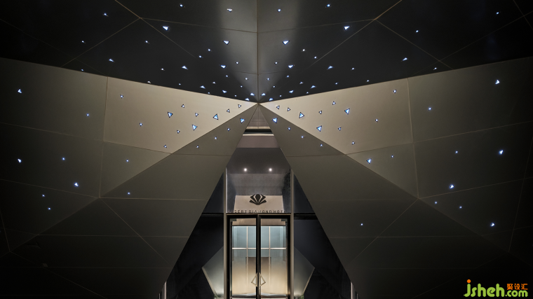 关于这个项目设计之初的整体思考,设计师将沙漠钻石酒店视为一个可以承载高质量休闲度假和文化艺术交流的空间,杜恒谈到2021年梵克雅宝“Sous les étoiles星空下”系列珠宝展发布会在宁夏中卫沙坡头星星酒店专场展出,构筑起梦幻般的浪漫星空场景,充满了对浩瀚星空的无限遐想与神秘,共同促成了一场珠宝展的完美演绎。这对她钻石酒店的设计理念颇有启发。星空与钻石理念的契合既是传承也是创新。作为沙漠星星酒店二期,钻石酒店既是代表着沙漠精神的“沙漠中的钻石之心”,又是中旅国际布局沙坡头“国际沙漠旅游度假目的地”的新里程碑。杜恒笑言自己是永恒的信仰者,无论是在钻石礼堂里许下爱的誓言的新人,还是来此度假的旅人,她想为大家营造一种电影感、未来感的沙丘基地视觉画面,又不失城市生活空间的舒适体验,这是她思考打造这座具有国际视野和文旅新场景营销思维的酒店的核心要素。