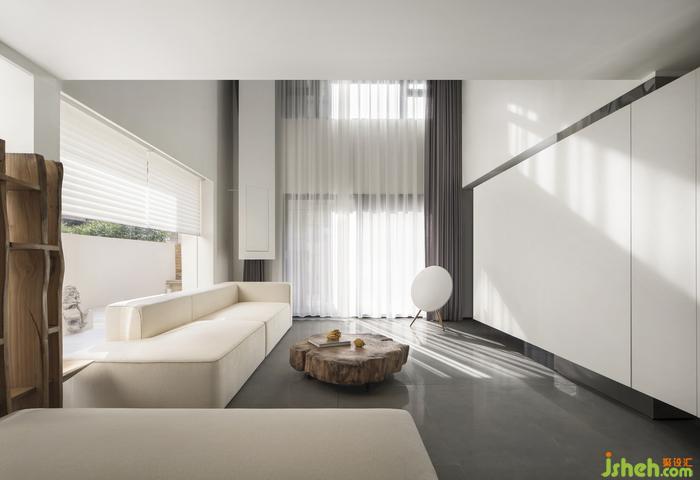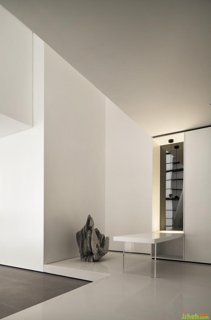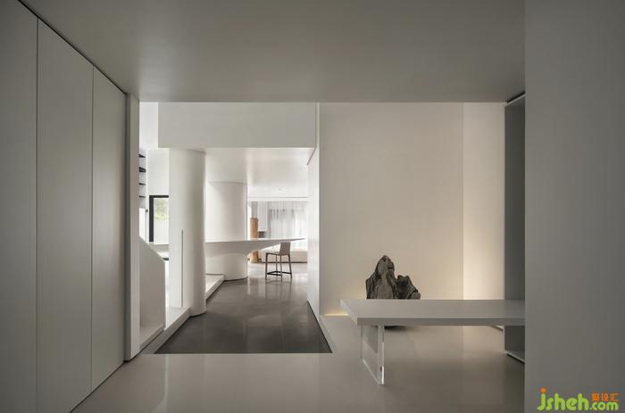 玄关处自然风化的石头让“开门见山”的景象回家既视,望向软膜天花,广州别墅装饰整个身心瞬时变得自在从容。全白色的空间骨骼,透过光线折射出非同一般的美学创造。