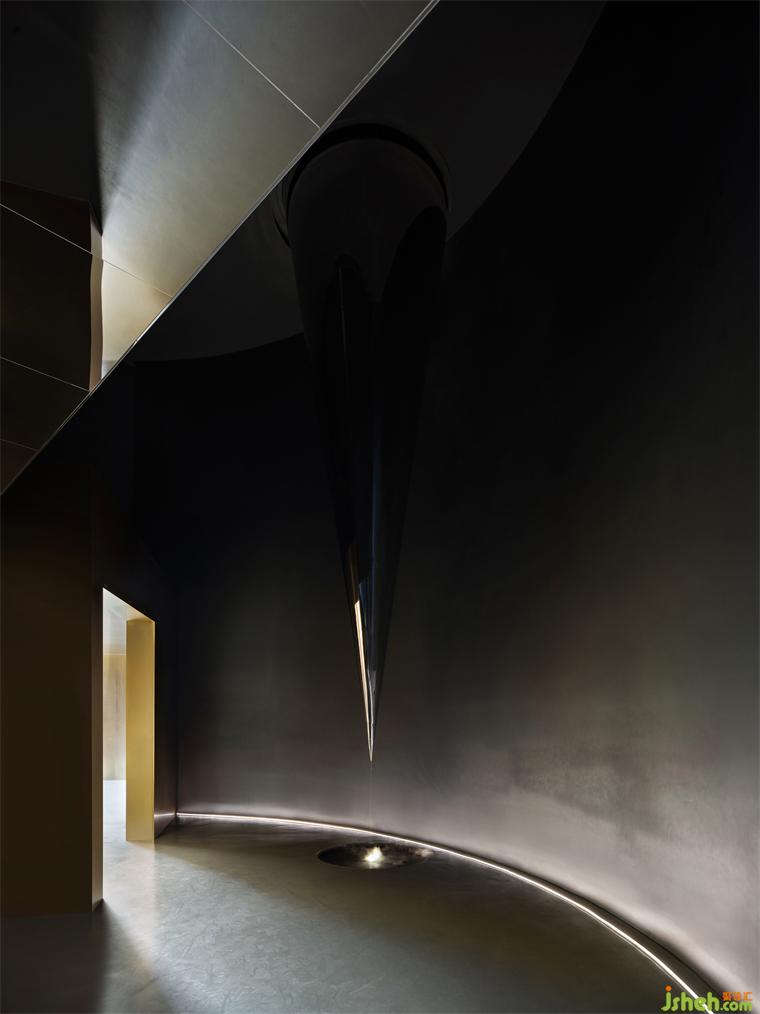 通透与凝结展露无遗,精湛与匠心石川可鉴。中山展厅设计高5.1m的镜面不锈钢倒锥体,叹为观止。