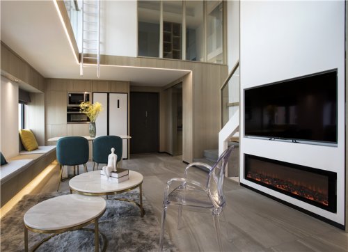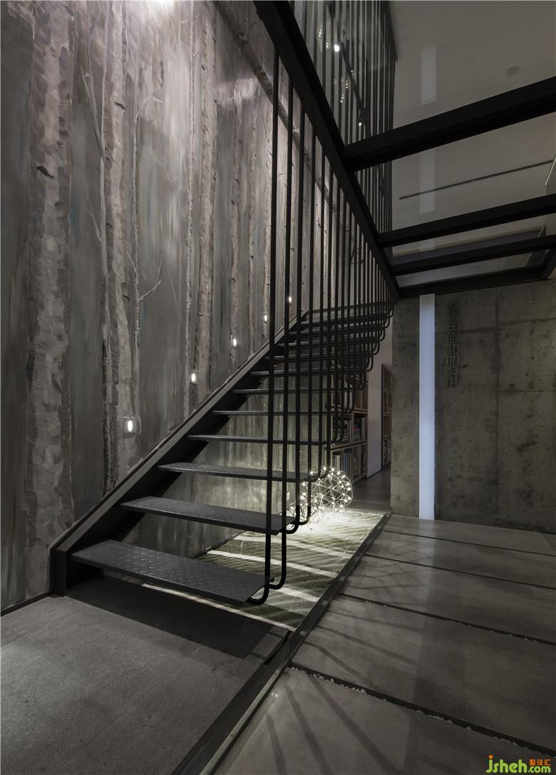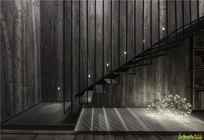 楼梯内侧精心绘制的抽象白桦林则让空间多了一份生活趣味,置身其中犹如身在辽阔平原,可以大口呼吸消除工作的疲惫。