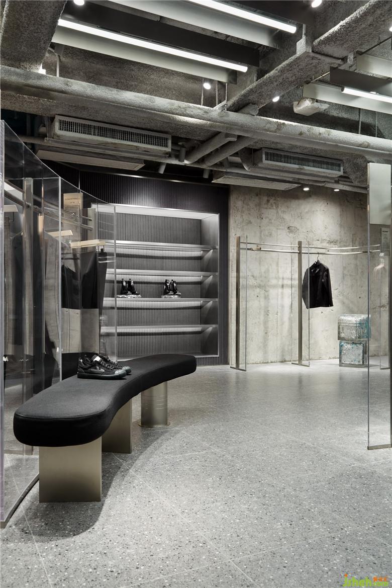 项目选址与回收厂的走访经历就像两条分别出发的轨迹,因奇妙的际遇殊途同归。在追寻未来生存空间与环境可持续的普适价值中,设计从对海洋与文明的思考到实验性材料测试的实践,并最终构建了传达品牌内核的商业空间。