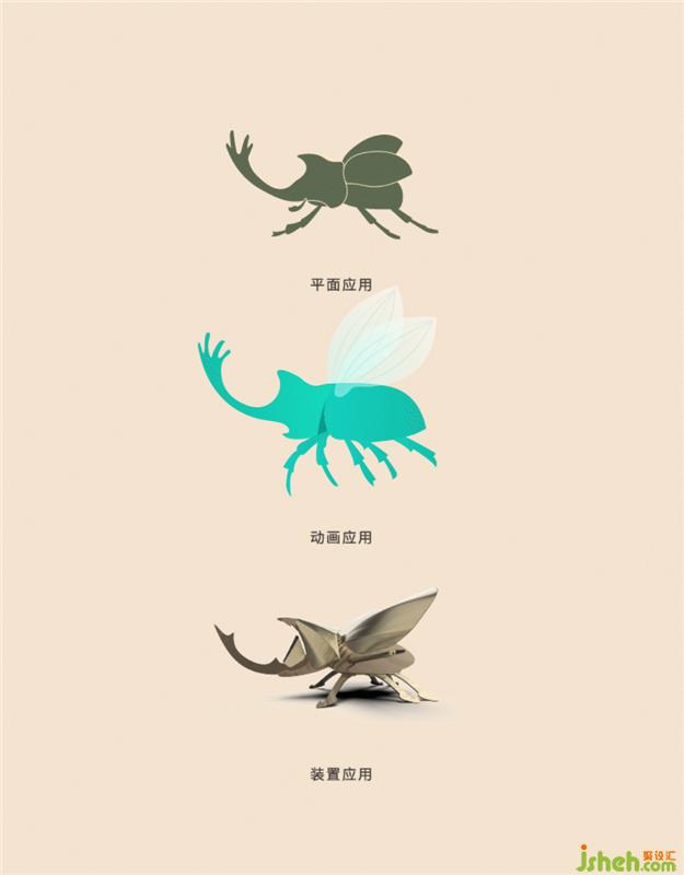 独角仙象征保护、治愈、能量和生命力,是故事中引路的精灵,也是品牌视觉系统中的形象符号。装修公司