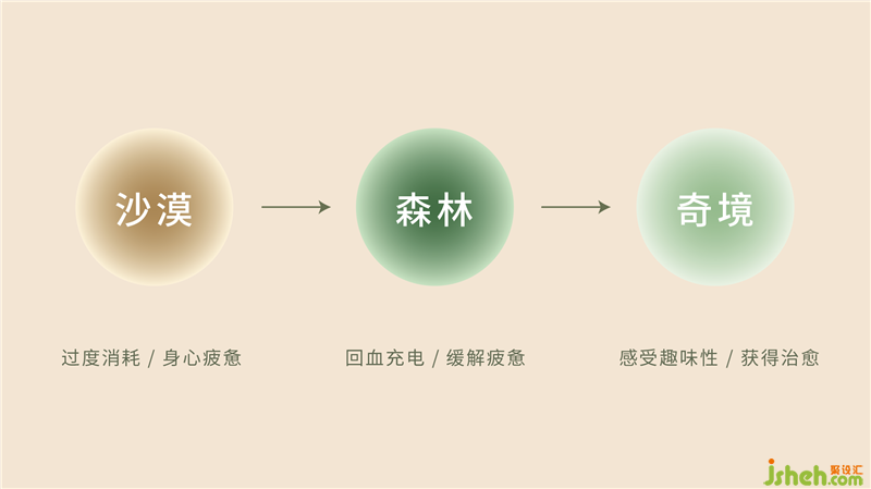 立品团队与业主共同为近3000平方的店面重塑了消费者在店内的体验路径,将空间划分为三大区域,讲述一个人们从沙漠到绿洲、找寻并最终到达奇境,通过足浴和SPA获得治愈的故事。装修公司