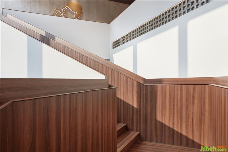 楼梯造型为顾客的空间体验带来惊喜,站在楼梯平台上一不小心就拍出港片质感。