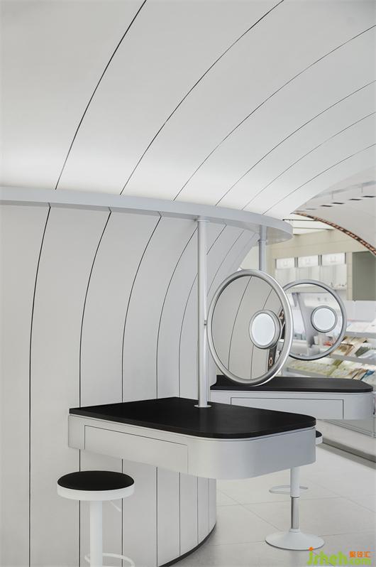 体验店设计该项目围绕“美妆情报局”的概念展开设计,将喜燃比喻为专门收集前沿美妆情报的精密组织,并将经过监测和筛选过的优质产品呈现给消费者;消费者通过进店体验,自主接收和取用所需的美妆情报。承载销售功能之外,整个空间赋予了消费者以自主探索的全新场景。