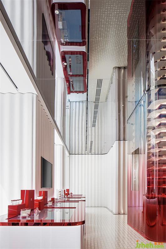 围绕核心单一产品延展出一个完整丰富的体验动线,旗舰店设计师在产品展示的基础上加入知识科普和文化再现模块,打造沉浸式的体验空间。一层空间主要以品牌零售为主,通过屏幕互动、产品展示以及售后服务等形式,向消费者展示完整的品牌线下销售空间形象。