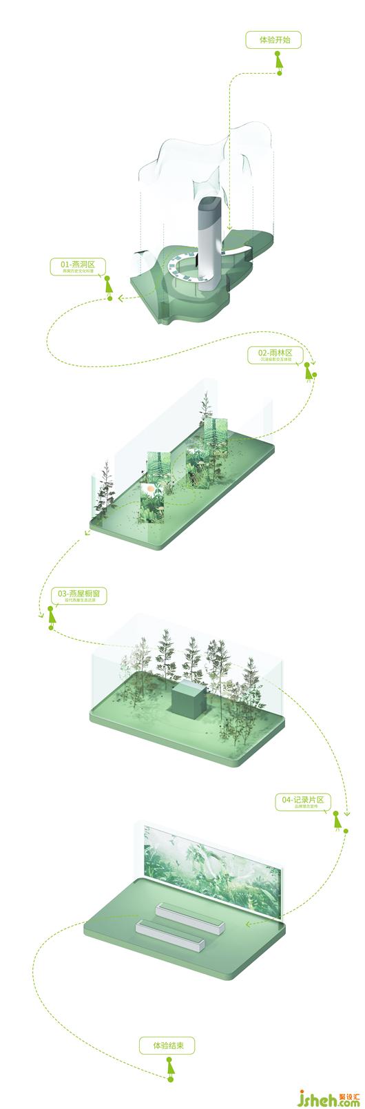 人的探索欲需要被不断激发。立品在二层空间置入文化再现的场景表达,还原金丝燕生活的燕洞、热带雨林及现代燕屋虚拟场景。