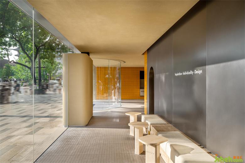 立品并没有对历史进行简单的复刻,而是通过提取文化印记进行现代转译,让新的空间成为连接历史和现代的媒介。内里空间以代表西安城市肌理的砂岩黄色为主色调,点缀银灰色和亮黄色,亮黄色隐喻昔日城墙既皇城的联系,银灰色代表对未来的敏锐感知。