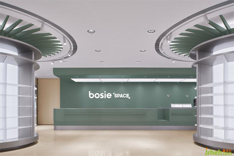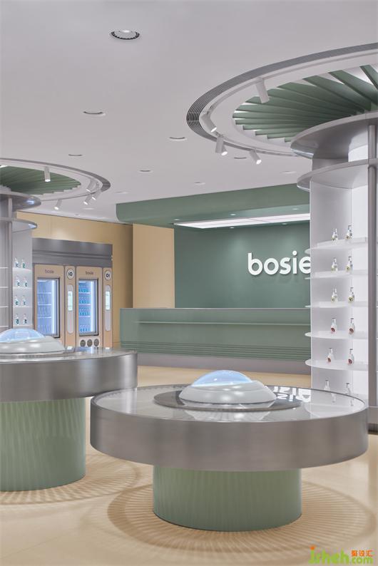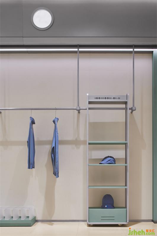 故事中飞船着陆在地球上一片人迹罕至的荒漠,立品设想整个一楼为飞船外部环境,货架元素的设计围绕地表生态勘察、物资采集和运输主题开展。地面模拟外部环境的砂砾质感,整体色调柔和了科幻情节的固有冰冷感。