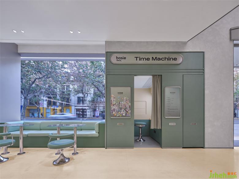 一层空间引入服饰区、零食区、冰淇凌区以及复古拍照区,作为零售终端中必不可少的功能业态被赋予鲜明的社交属性和奇幻感,体验和购买的边缘性被模糊,甚至发生了扭曲重合。探险者们也早已将自己代入到时空旅行的角色当中,对未知之域充满了好奇和探索的欲望。