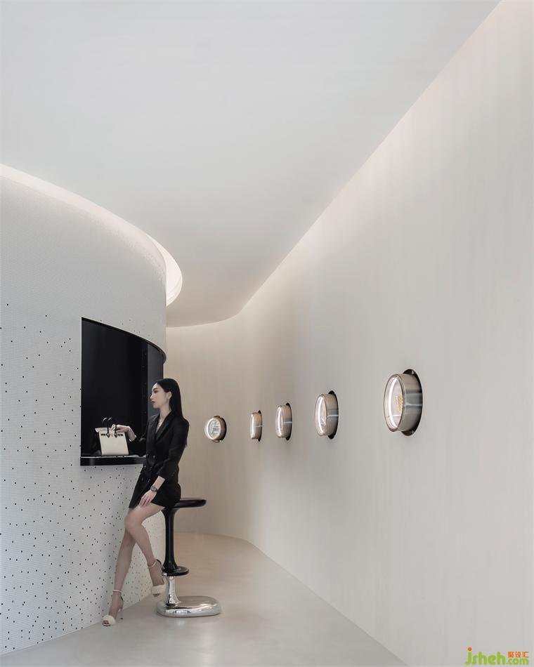 置换区窗口的“打开”尺度基于鉴定和置换作业所需,装修设计同时缩窄店员与顾客之间的物理距离,强调展示专业性,增加彼此的信任感。