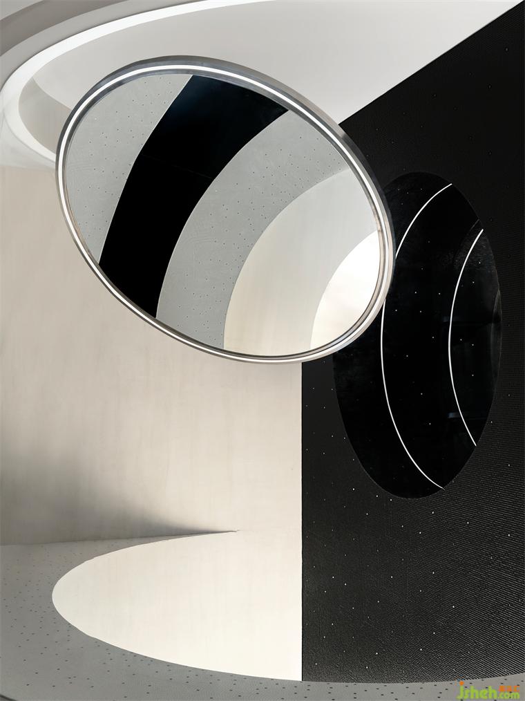 月的装置在这里清晰可见,立品利用玻璃将吊挂的装置和挑空空间进行围合,装修设计形成独特的场所记忆。
