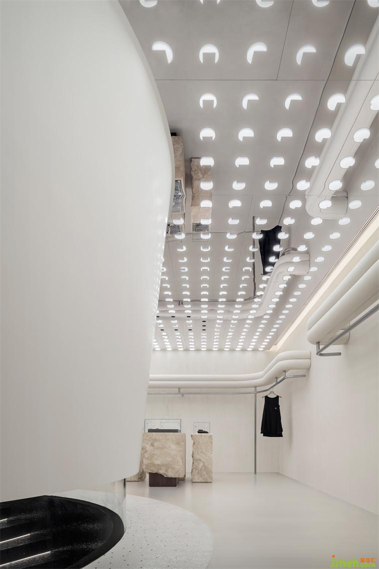 除了观念上的意象,设计语言也基于时间线将月的动态变化进行转译和表达,装修设计形成空间中排列布局的天花月相灯,实现功能和概念的巧妙结合。