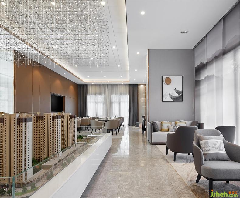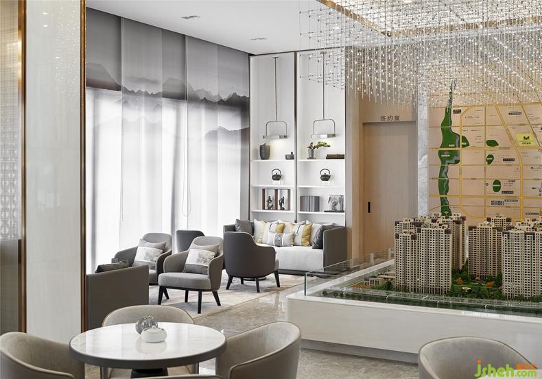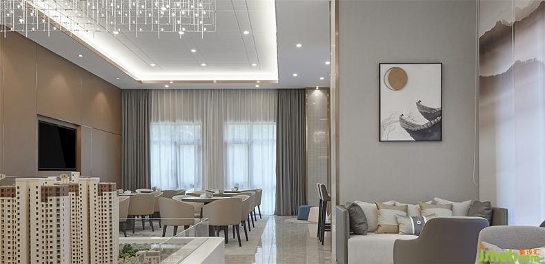 洽谈区整体空间清朗明洁,调和些许传统清雅的设色体系,糅合丝绸元素,空间与自然之间的呼应若隐若现,营造出和谐极具底蕴的空间调性。