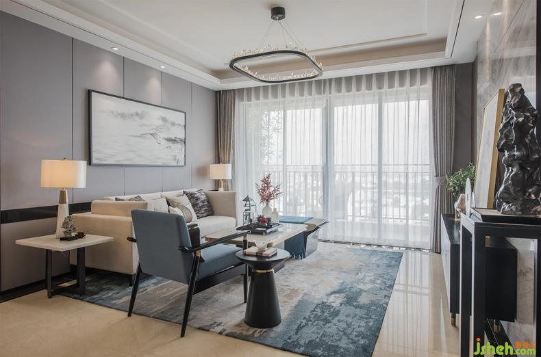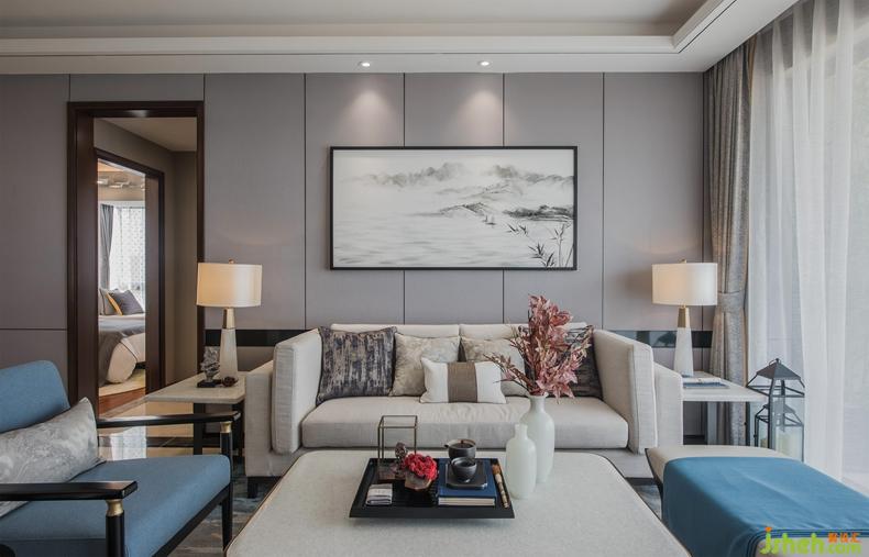 Living room decorated with "River withBamboo leaves diffuse boat" and "landscape between themountainside" hanging paintings and other decorative elements, collocation of simple and neat furniture, so that Chinese style and modern style of blending, showing a full of Zen and unconventional elegant hospitality space, in the emphasis on the owner of cultural taste and self-cultivation at the same time, even without losing the comfort of life originally.