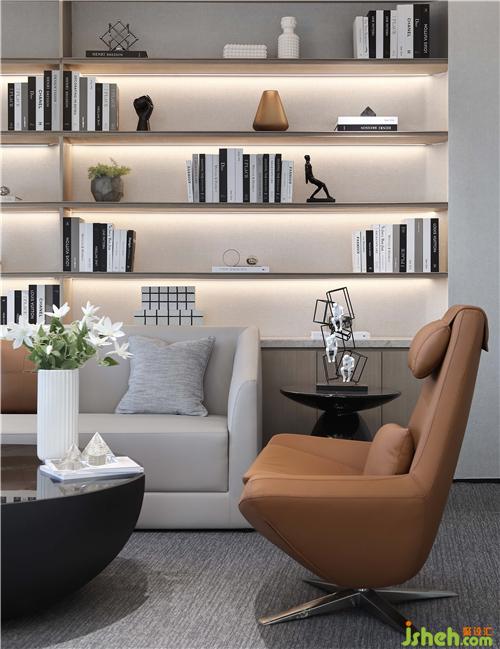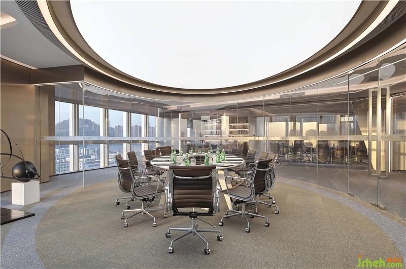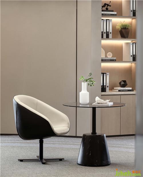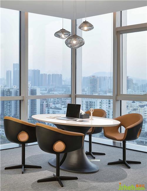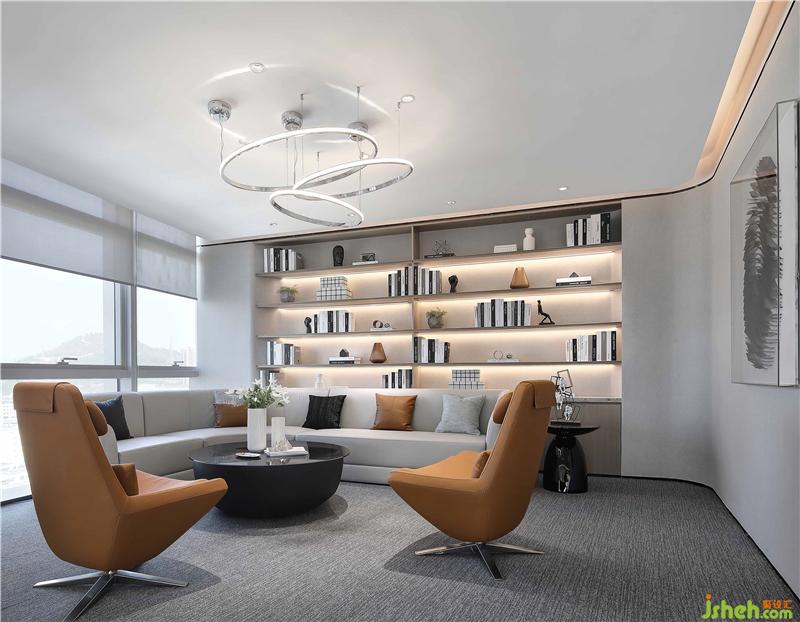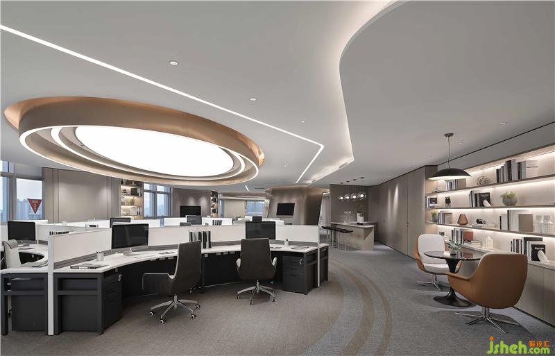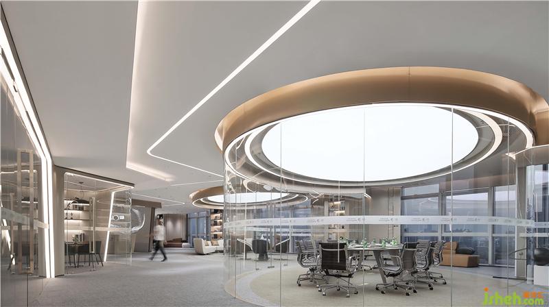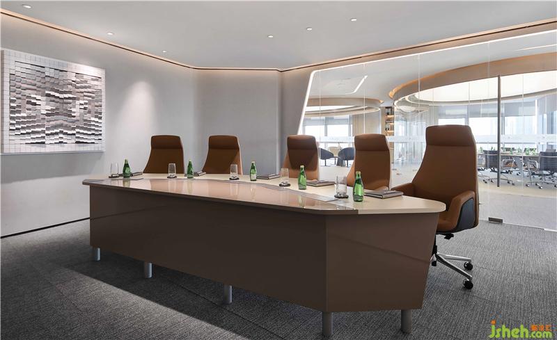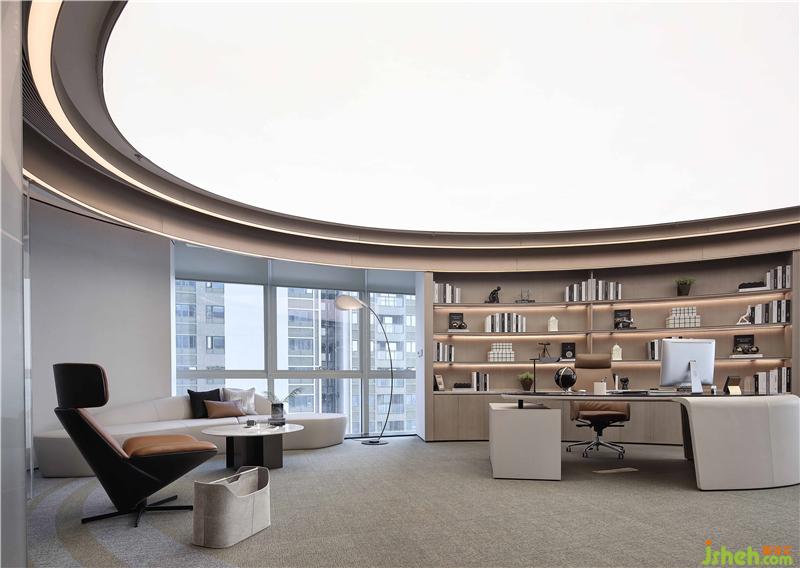 曲线与几何在空间共存,线条的形式感使办公室充满现代化与品质感,在视觉与使用上满足办公人群的情感诉求,构建人的第一感性认知。办公室设计