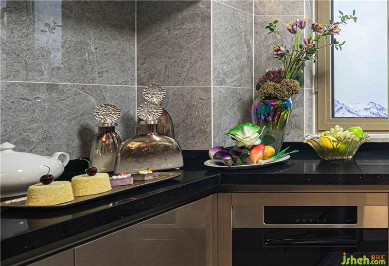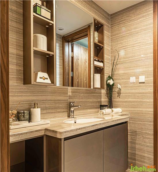 香槟金柜体及深色石材洁净台的嵌入,契合“精工美宅”的品质要求,重新定义人居的新高度,且达到LIVES BETTER的舒居环境。