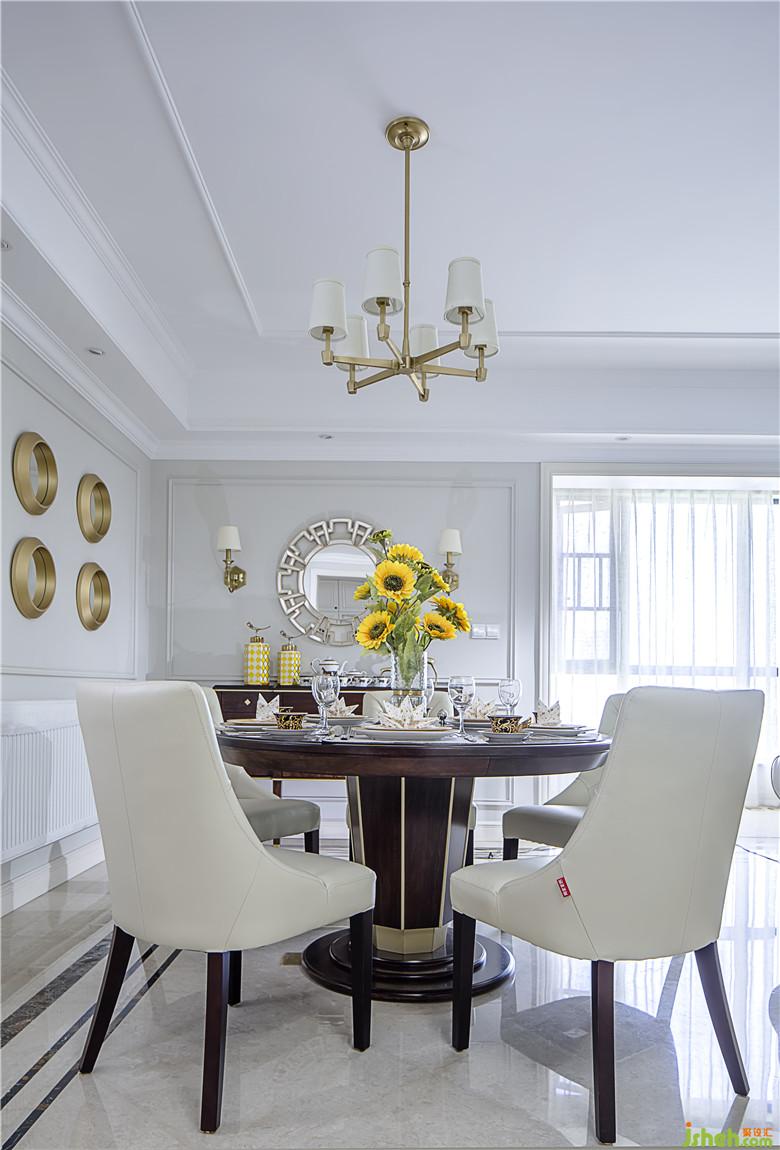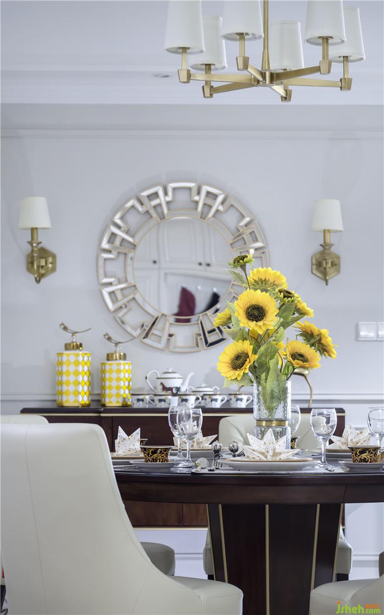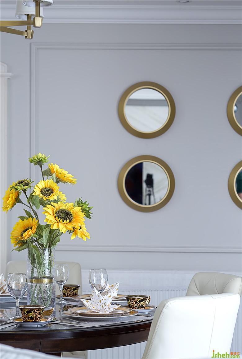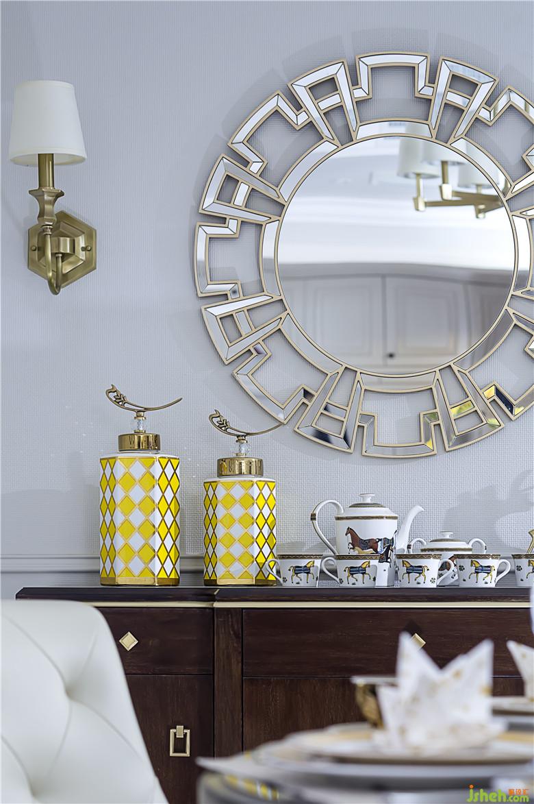 餐厅:在一些饰品的选用上,室内设计师还“夹带”了一些私人爱好,比如为餐桌找了一对产于1894年的沙俄时代的纯银调料罐,相对应的,餐具则选用了带有拜占庭纹样的瓷器来体现某种历史渊源(了解俄国历史的都明白俄国和拜占庭的历史关系),而茶几上的那个纯银糖罐来自于19世纪60年代一个法国侯爵家族。西厨的胡椒磨产于上世纪80年代,酒桶里的葡萄酒则产于新世纪的罗讷河新教皇堡产区,……这些都寓意着一份对业主的穿越百年的祝福。