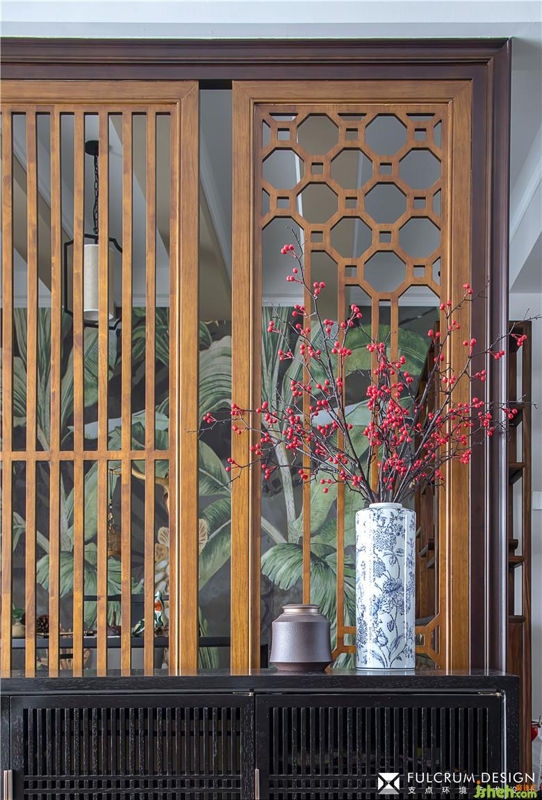 从入户的第一眼开始,它就表达了一种犹抱琵琶半遮面的含蓄,穿过深浅搭配的雕花隔断,室内设计师看到了传统和现代的亲密交融,硬与软的和谐共济,鲜与素的同台共舞。