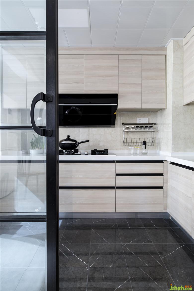厨房虽然不豪奢,但是功能全面,简单干净。浅浅的木纹,能给人暖暖的味道。