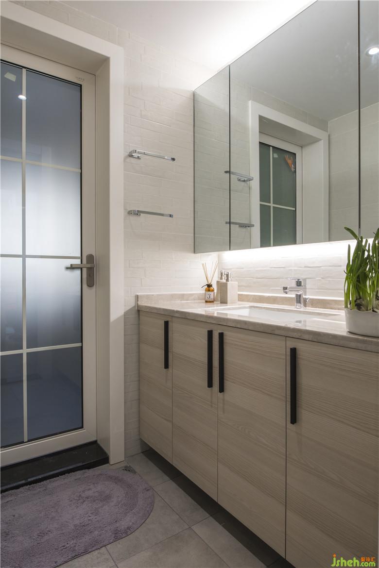 这个卫生间我很喜欢,明亮干净,收纳功能强大。浅白色的亚光砖没有一丝冰冷的生硬感。
