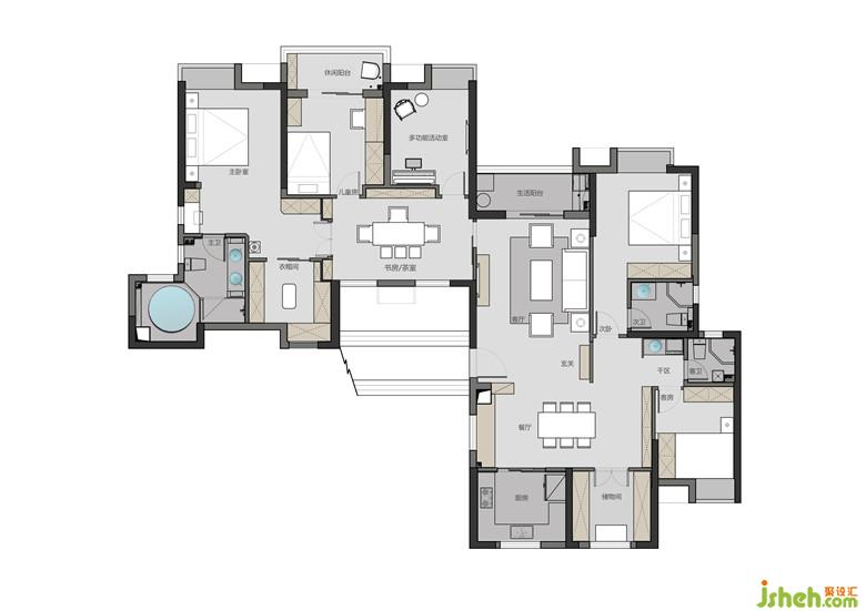 雅致、舒适、自然,身在城市,心归山水之间,身在当代,亦能体验悠悠古韵之美,不“破除”、不堆砌,从“温故而知新”的角度认知并发掘传统文化的精神层面,从传统中式中提取设计灵感,室内设计师结合当代设计手法,解读出新的设计语音。