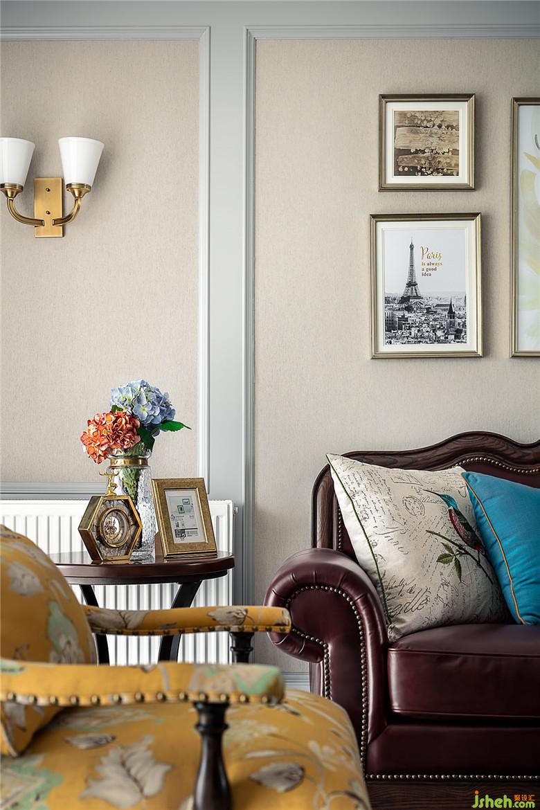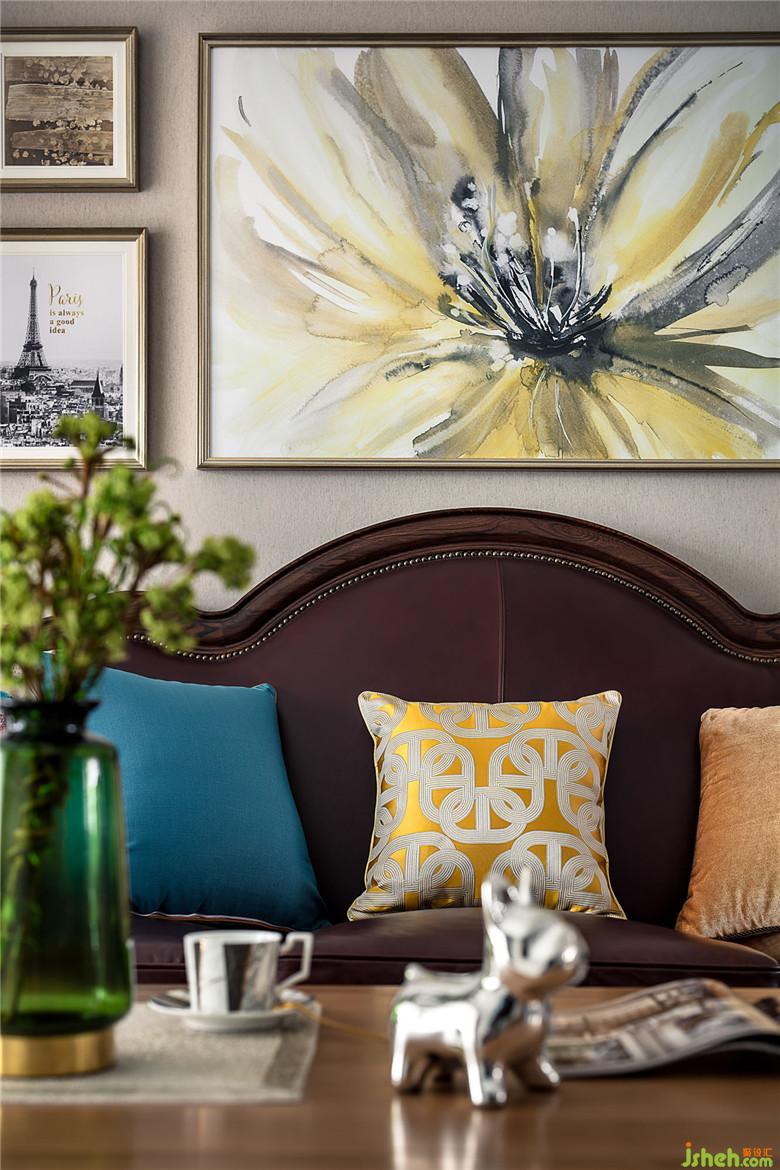姜黄色的布面休闲椅与深咖色的皮质形成了鲜明的对比,但放在一起却又如此生动自然。