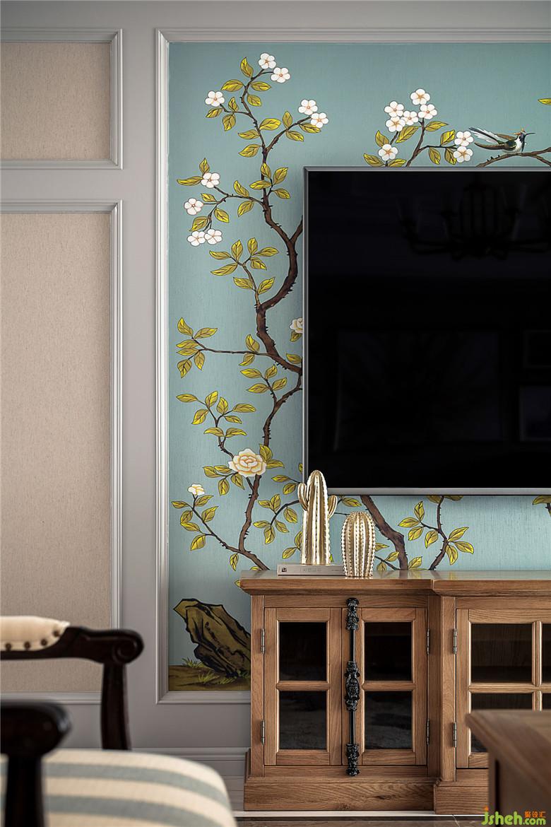 电视柜的细节是我非常喜欢的,黑色铸铁的拉手,拉丝做旧的木质,充满年代的味道。中西难辨的花鸟图案,让一切变得丰富且不可捉摸。