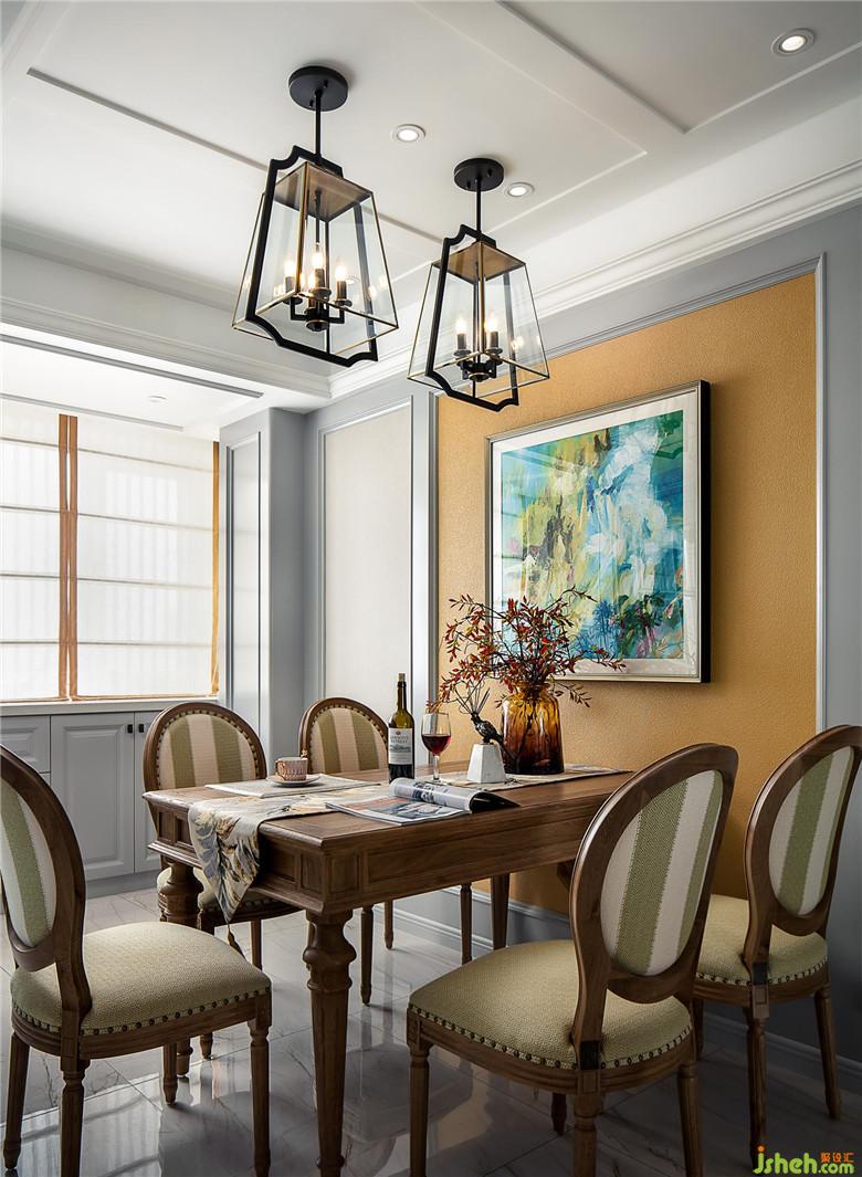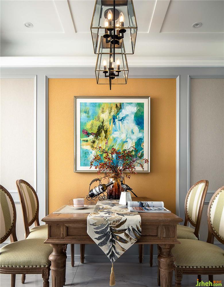 客餐厅全貌:黄色,绿色,蓝色,就好像一场季节的绽放。