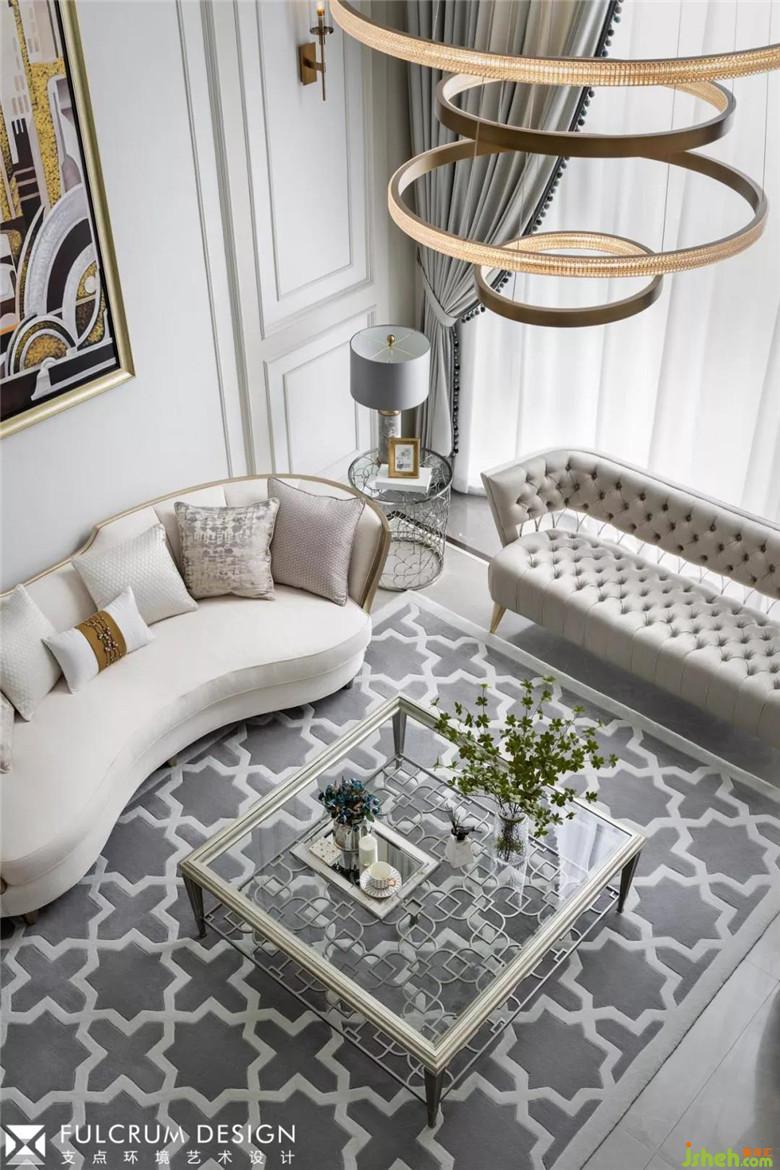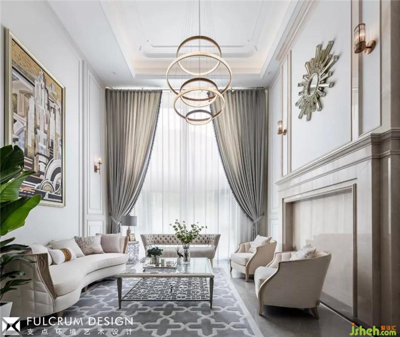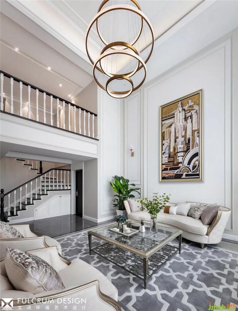 5米多层高的挑高客厅,大面积落地窗引入双倍自然光,整个空间更显开阔疏朗。中性的沙色系墙面与地面低调内敛的灰色系的搭配相得益彰,散发着一种静谧的味道;随着线条的镶嵌,中性色调的色彩深浅叠加,加深空间层次和细节,精致的家具点缀其中,一针一线,一珠一纹,无不透露着精致;仿佛芭蕾,轻轻一点,却见功力!