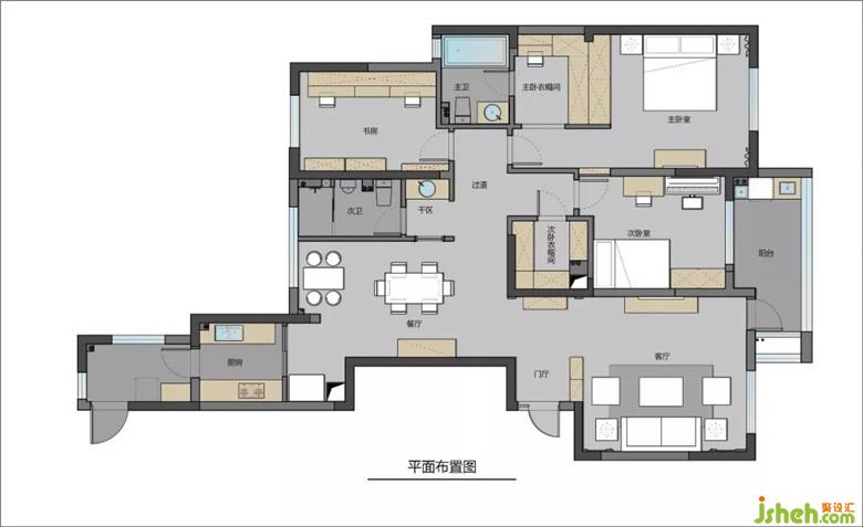主卧室的柔和简洁,儿童房那带有一丝英伦风的华贵,跟充满理性的书房交织在一起。让私人空间显得丰富多彩但又不散乱,主次有序。