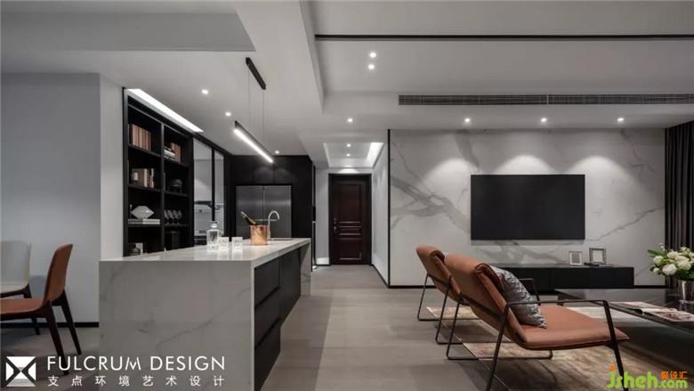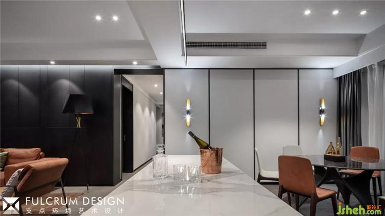 客餐厅整体以高级灰为主要基调,搭配深浅不一的米黄色,突出了客厅背景的精致,也在客餐厅勾勒出优雅和别致。同时在软装饰品选取精致的缎面,丝绒,羊毛搭配,进一步提升了居室的格调。